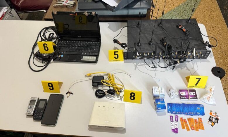 وقد أسفرت عملية التفتيش المنجزة داخل الشقة التي يستغلها المشتبه فيه، عن حجز عدة شرائح للاتصالات الهاتفية الوطنية، بالإضافة إلى حاسوب محمول، وأجهزة إلكترونية ودعامات معلوماتية متنوعة تستعمل في هذا النشاط الإجرامي.