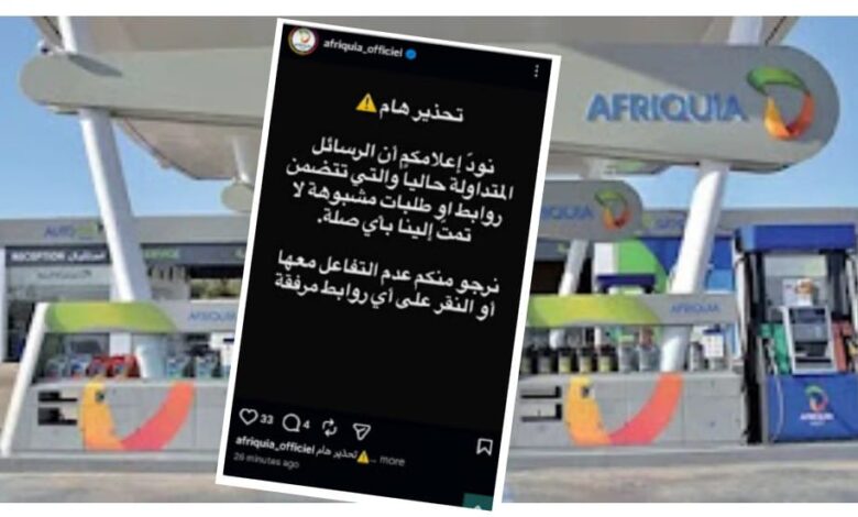 حذرت شركة “أفريقيا” لبيع المحروقات زبائنها من وجود روابط ورسائل مشبوهة يتم تداولها حالياً على أنها صادرة عنها، مؤكدة أن هذه الرسائل لا تمت لها بصلة بأي شكل من الأشكال.